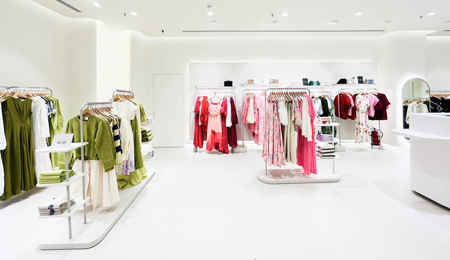 Spanning over 1,852 sq ft, the space features a minimalist, clean and sharp aesthetic, with crisp white walls that let the colours, textures and fabrics of the clothing really shine. Thoughtfully planned fixtures, open sightlines, and focused lighting create a calm, uncluttered environment, encouraging customers to experience each piece up close. The result is an elevated yet inviting atmosphere that mirrors the Rareism woman’s refined, contemporary sensibilities.