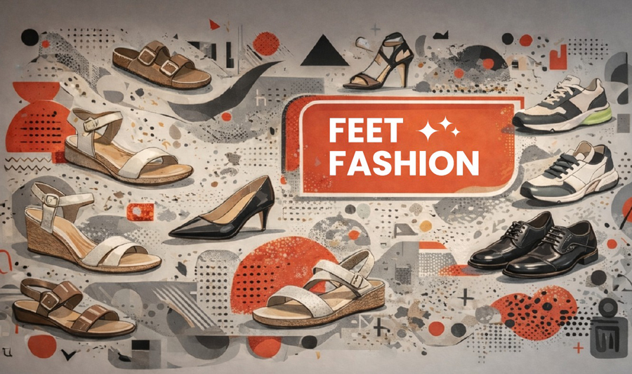 Taking a graphic approach, this large-scale digital mural brings together the idea of “Feet Fashion”. Unlike the other windows, the focus here is on showcasing the variety within the brand. The mural features a mix of sandals, heels, formal shoes, and sneakers. These elements are set within a bold composition of geometric shapes, textures, and splatter-like graphics, built around a strong red and black colour palette.