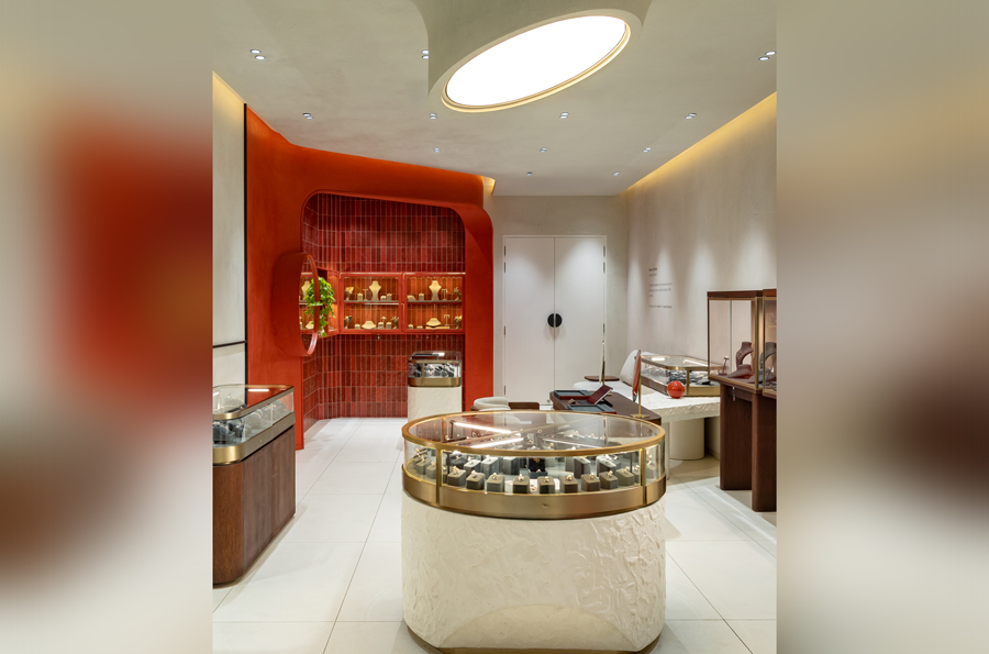 Breaking into Delhi’s highly competitive jewellery market is no small feat, especially in a neighbourhood like Lajpat Nagar, where legacy retailers and new-age brands coexist in close proximity. Yet, Nodes of Destiny chose this very landscape to open its first-ever physical store. The store’s facade draws attention from the bustling streetscape, while the interior shifts into a calmer, more intimate environment. The idea was not to overwhelm with opulence, but to create what the designers describe as a sense of conscious luxury – contemporary and understated.