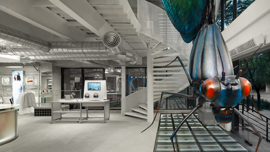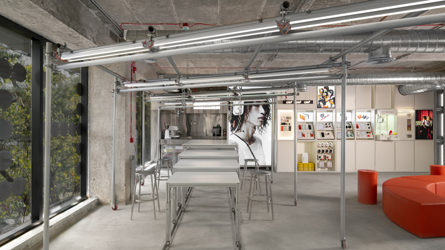 Drawing inspiration from the retro-futurism of 1970s assembly lines and workshops, the design exposes structure as spectacle. Concrete, aluminium, steel, and glass are left raw and unadorned, with transparency extending beyond the product to become the defining ethos of the space - nothing is hidden, whether in form, function, or process.