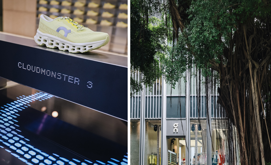 At the store entrance, two century-old banyan trees form a natural urban landmark. On has redesigned and revitalized the surrounding park, creating a welcoming public space for runners’ activity and community gatherings.