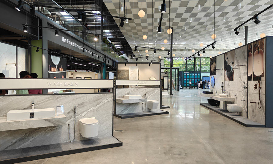 Technology is a thoughtful add-on in the showroom. “The integration works on two levels,” mentions Sanjay. “First, large-format, lifestyle-driven screens, from the exterior to the heart of the product areas. Second, at a more personal level, advisory iPads in each product category and at the design centre provide guidance and help customers make informed choices.”