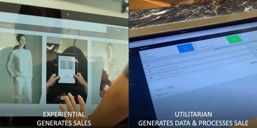 - Utilitarian Retail Tech operates behind the scenes, providing the essential data and tools needed for operational efficiency. This includes solutions like integrated inventory management systems, Point of Sale (POS) billing, footfall counters, and IoT trackers. These technologies streamline back-end processes, improve staff efficiency, and provide valuable insights that inform business decisions.