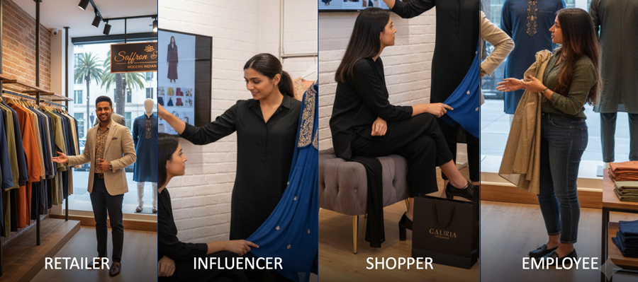 1. Stakeholders: The R.I.S.E. of Retail: The first step is to identify all stakeholders involved in the retail ecosystem. We have categorized them into four key groups: Retailers, Influencers, Shoppers, and Employees. This includes everyone from online influencers and last-mile technicians to shop floor staff and even the shopper’s friends and family. The primary focus of this funnel is always the stakeholder who monetizes the funnel - the shopper - followed by the influencers and the retailer.